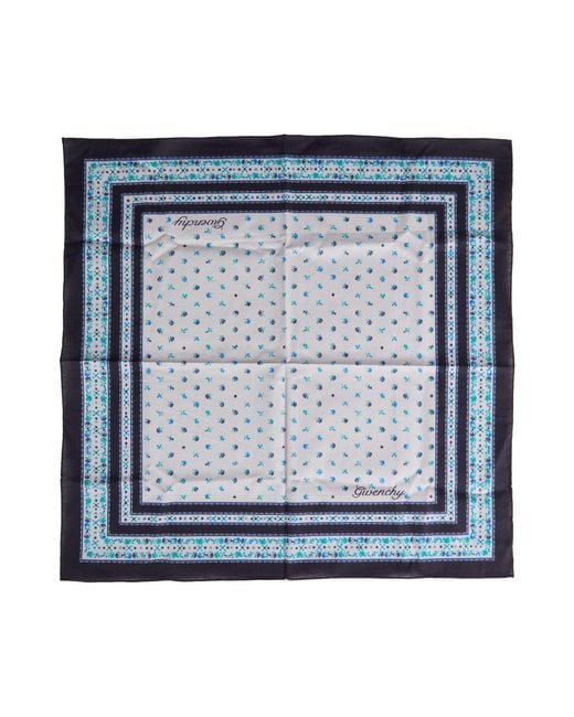 GIVENCHY. foulard, tela, fantasia floreale, brand logo, lavare a secco, non candeggiare, non asciugare in asciugatrice. 100% Cotone. Colore: blu