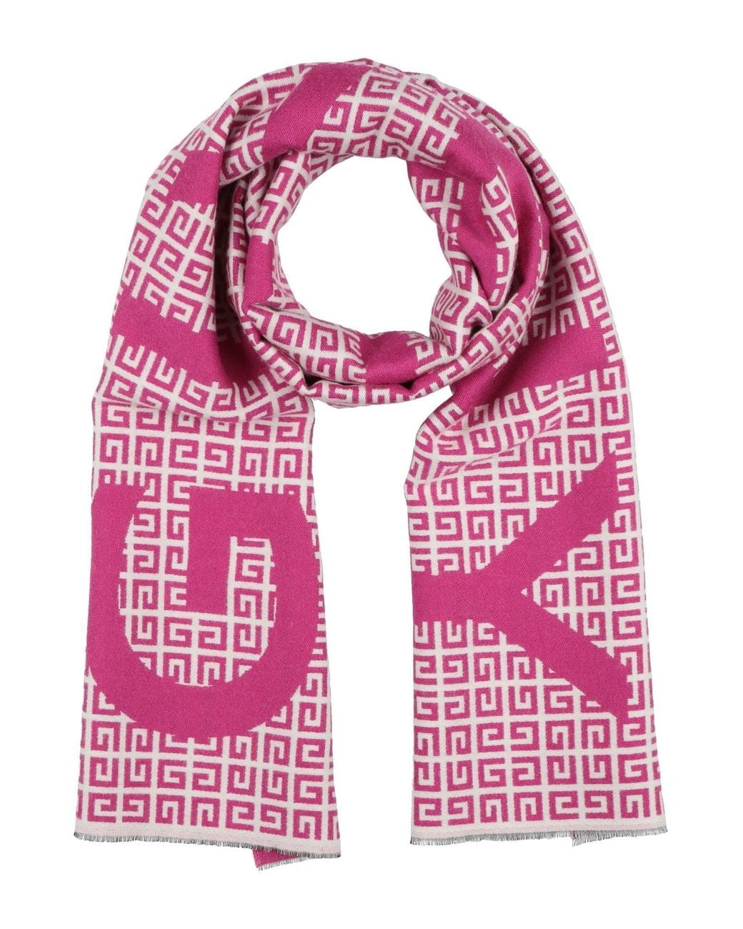 GIVENCHY. sciarpa, flanella, jacquard, fantasia logo, brand logo, frange, lavare a secco, non candeggiare, non asciugare in asciugatrice. 84% Lana, 8% Lana Vergine, 8% Seta.