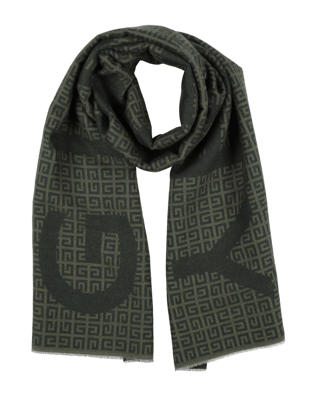 GIVENCHY. sciarpa, flanella, jacquard, fantasia logo, brand logo, frange, lavare a secco, non candeggiare, non asciugare in asciugatrice. 84% Lana, 8% Lana Vergine, 8% Seta.