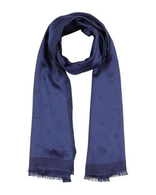 GIVENCHY. stola, raso, fantasia logo, brand logo, lavare a secco, non candeggiare, non asciugare in asciugatrice. 61% Seta, 39% Cotone. Colore: blu