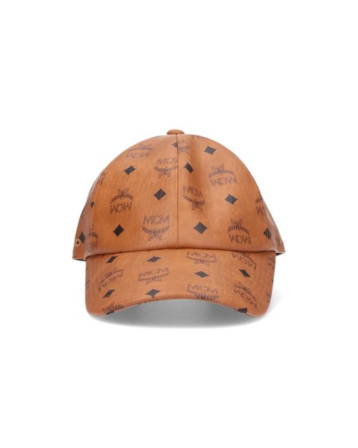 Cappello baseball logo MCM, in "Visetos" marrone, motivo stampa logo, visiera curva, cinturino regolabile retro. Colore: marrone