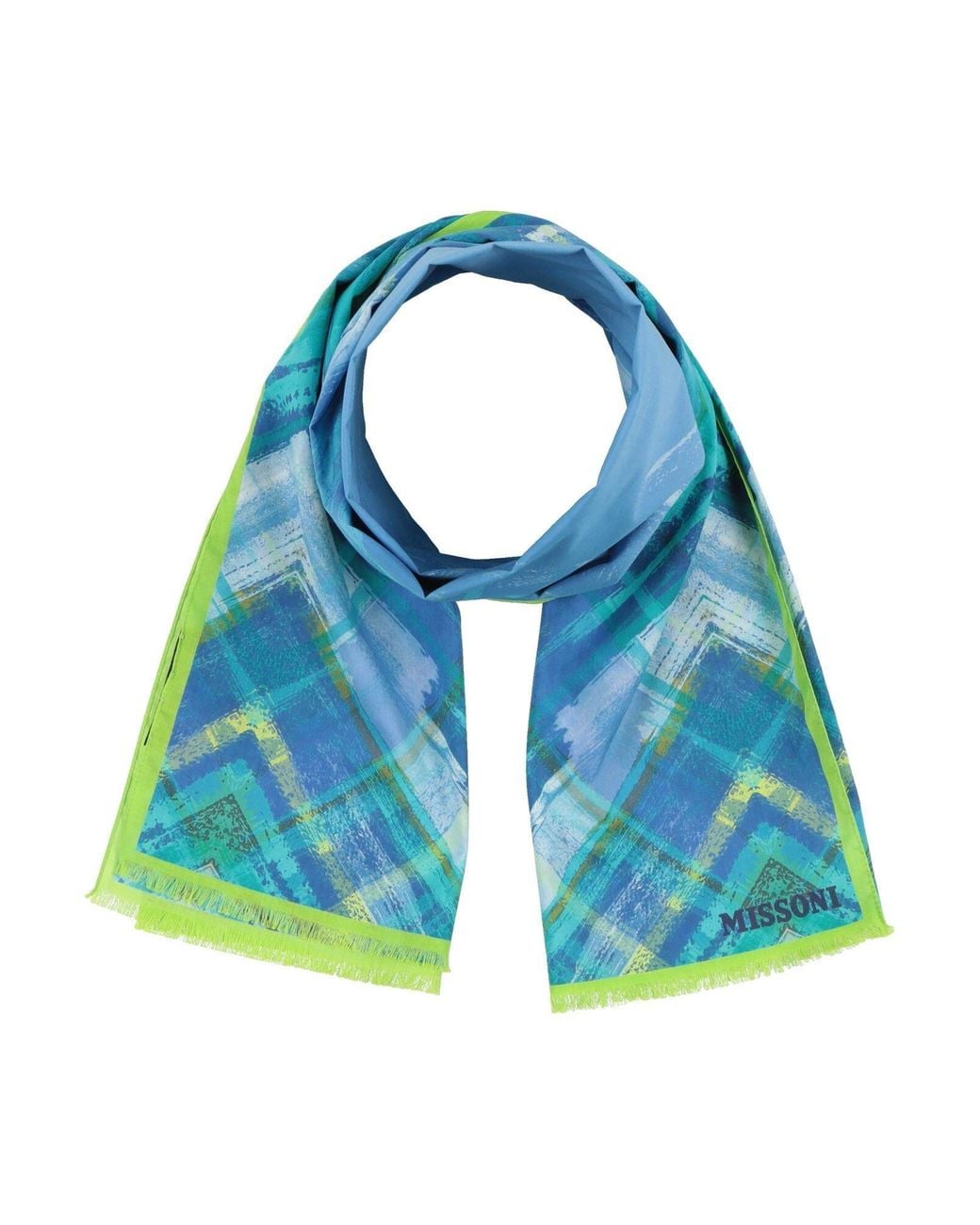 MISSONI. sciarpa, tela, multicolore, brand logo, frange, lavare a secco, non candeggiare, non asciugare in asciugatrice. 100% Cotone. Colore: blu
