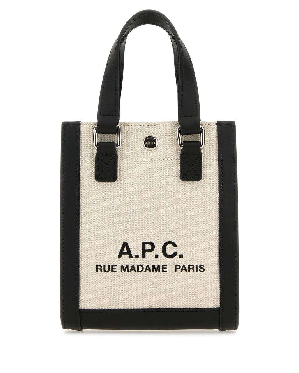 Borsa a mano realizzata in tela di cotone e lino con inserti in pelle liscia caratterizzata da stampa logata sulla parte frontale.- Due manici piatti in pelle - Tracolla amovibile regolabile in tessuto- Chiusura mediante bottone magnetico - Sfoderata