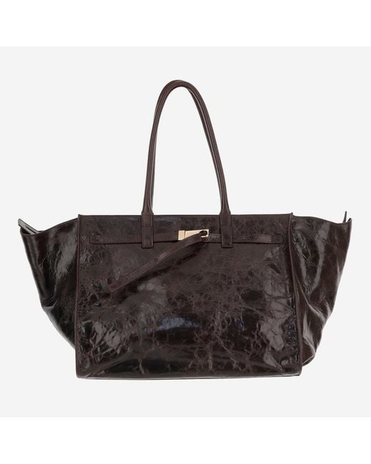 Borsa in pelle Due manici superiori Accessori in metallo sul davanti Profilo scolpito e finitura lucida Scomparto interno spazioso Chiusura superiore con cerniera Marrone scuro Prodotto in Italia Composizione: 100% pelle