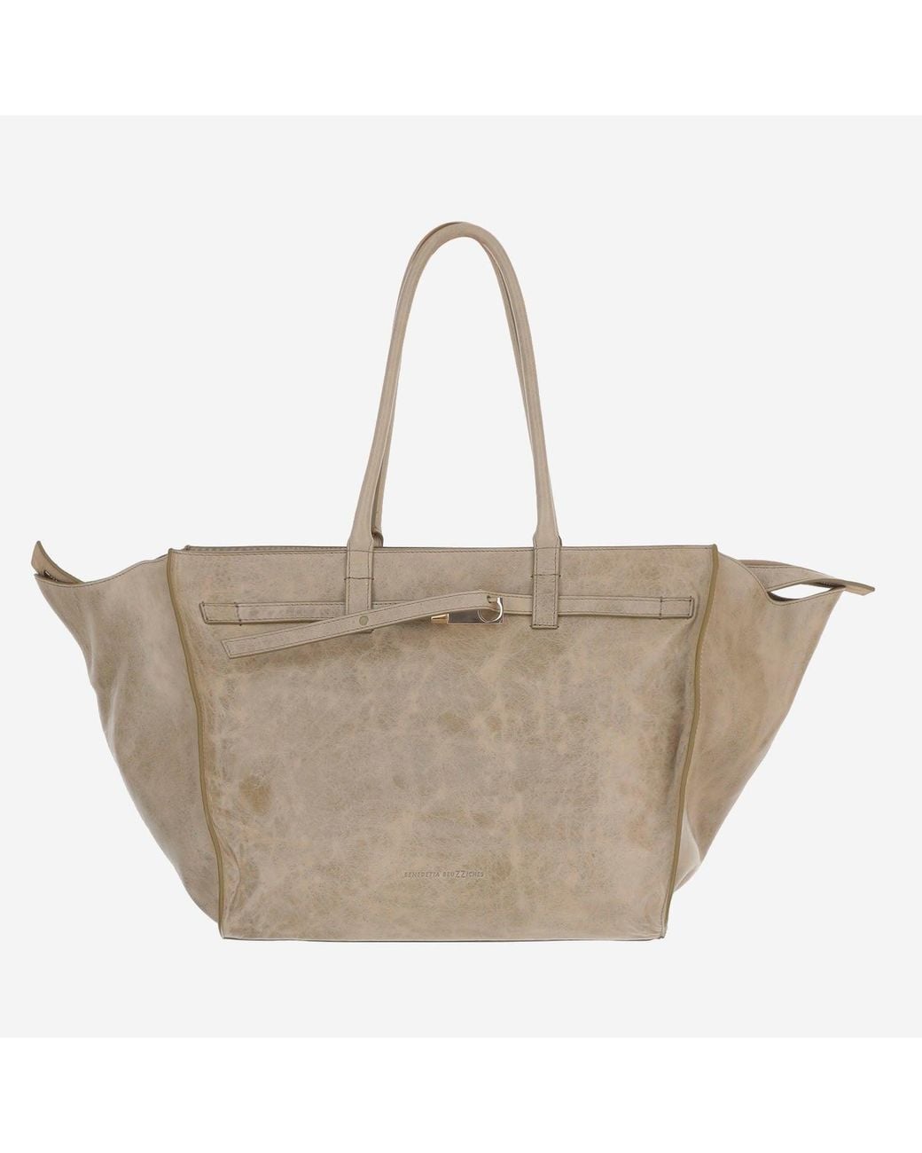 Borsa in pelle Due manici superiori Accessori in metallo sul davanti Profilo scolpito e finitura lucida Scomparto interno spazioso Chiusura superiore con cerniera Beige Prodotto in Italia Composizione: 100% pelle
