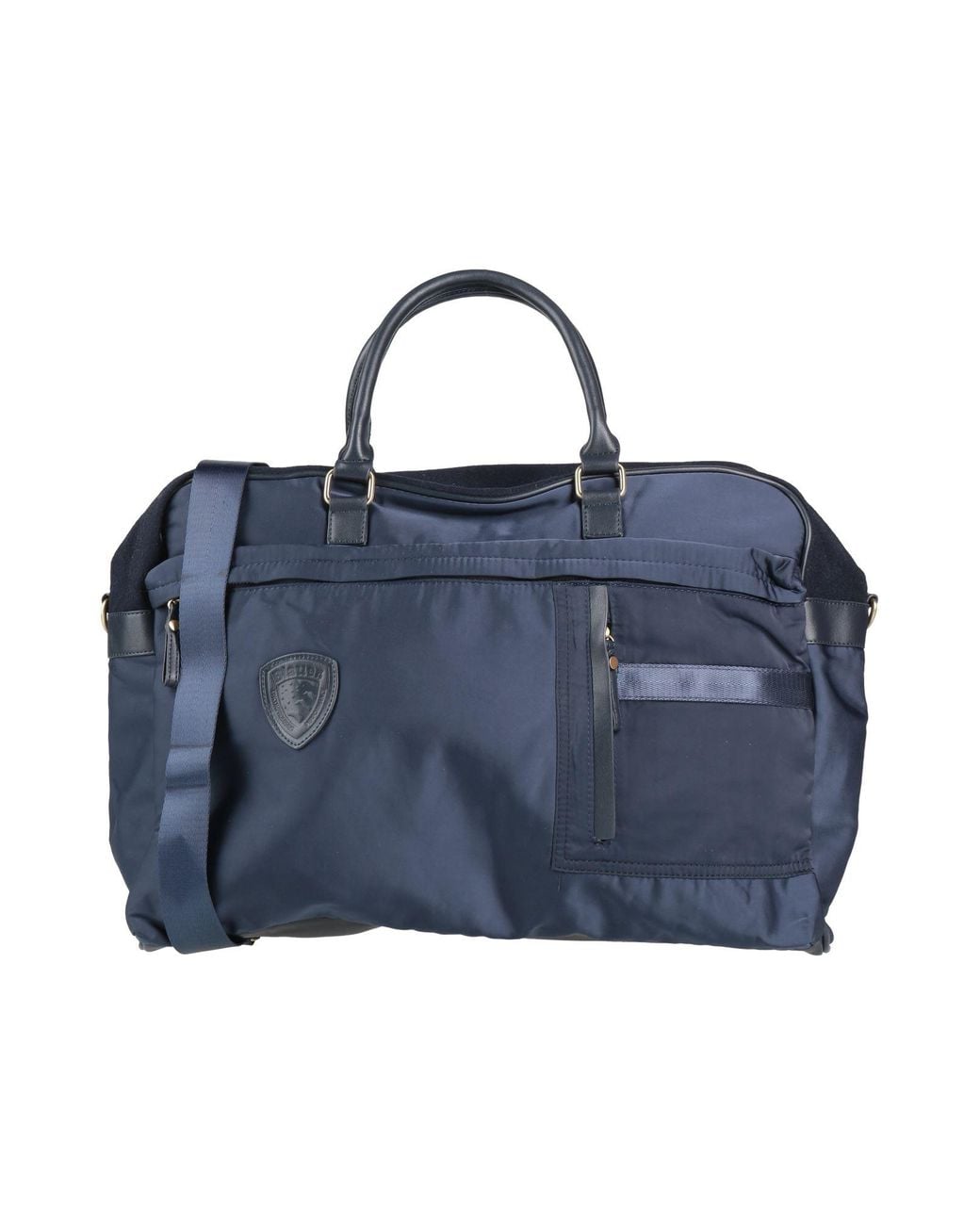 BLAUER.. raso, panno, tinta unita, finiture in materiale sintetico, brand logo, interno foderato, chiusura con zip, tasca interna con zip, tasche esterne con zip, doppio manico, tracolla removibile e regolabile, fondo con piedini. 90% Poliestere, 10% PVC - Polivinilcloruro. Colore: blu