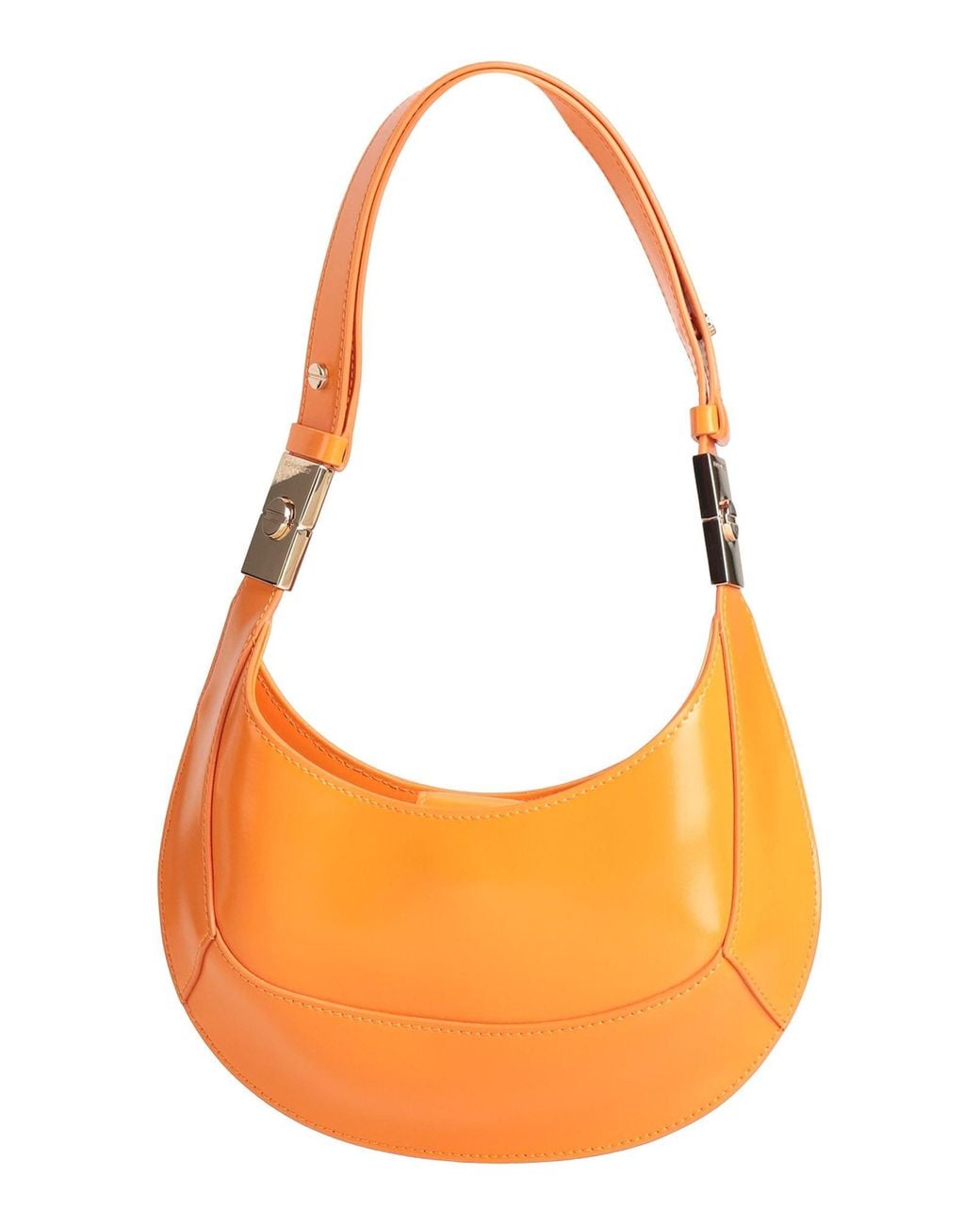 BORBONESE. hobo, pelle lucida, tinta unita, brand logo, chiusura a calamita, interno foderato, manico singolo, modello medium, contiene parti non tessili di origine animale. Pelle. Colore: arancione