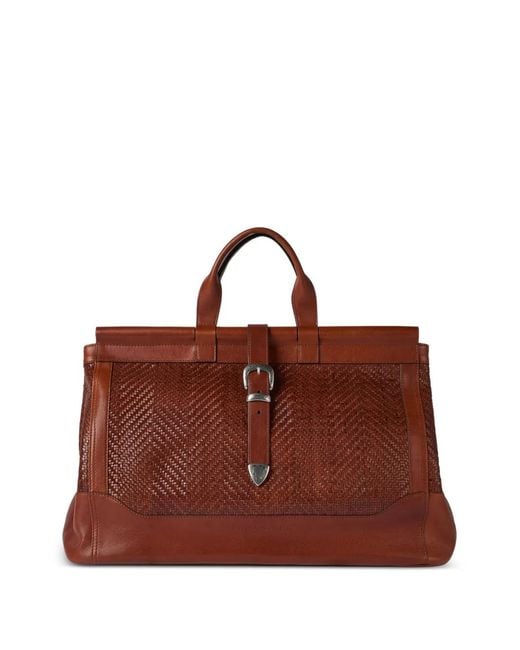 Cognac inserto intrecciato manico dettaglio fibbia Size: Taglia unica. Gender: Male. Material:pelle di vitello. Colore: marrone