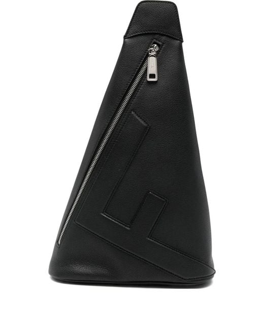 Nero logo goffrato chiusura superiore con zip tracolla regolabile dettagli color palladio Size: Taglia unica. Gender: Male. Material:pelle pieno fiore. Colore: nero