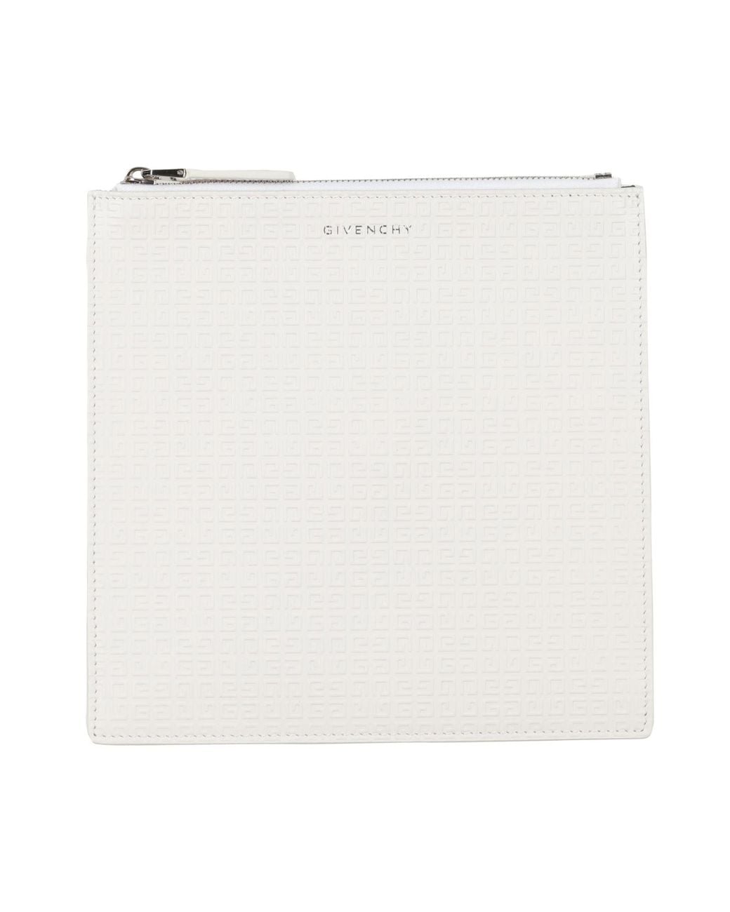 GIVENCHY. pelle testurizzata, fantasia logo, brand logo, interno foderato, chiusura con zip, contiene parti non tessili di origine animale. 100% Pelle di vitello. Colore: bianco