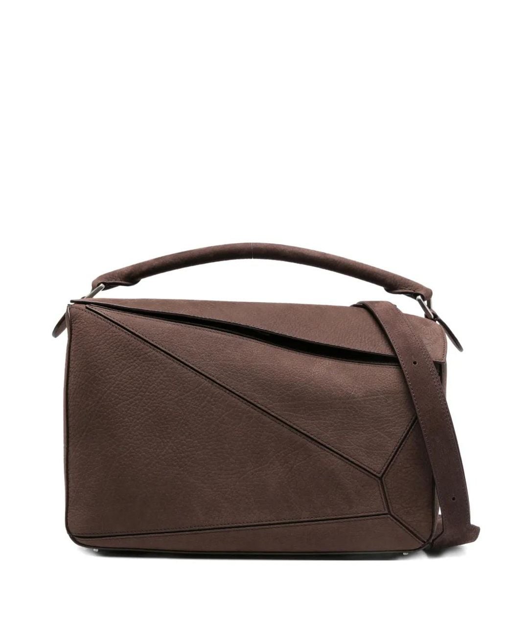 Marrone pelle scamosciata manico design a inserti geometrici chiusura con zip tracolla rimovibile logo goffrato Proteggi i tuoi acquisti. Questo articolo è fornito con una borsa protettiva antipolvere. Size: Taglia unica. Gender: Male. Material:pelle scamosciata di vitello. Colore: marrone