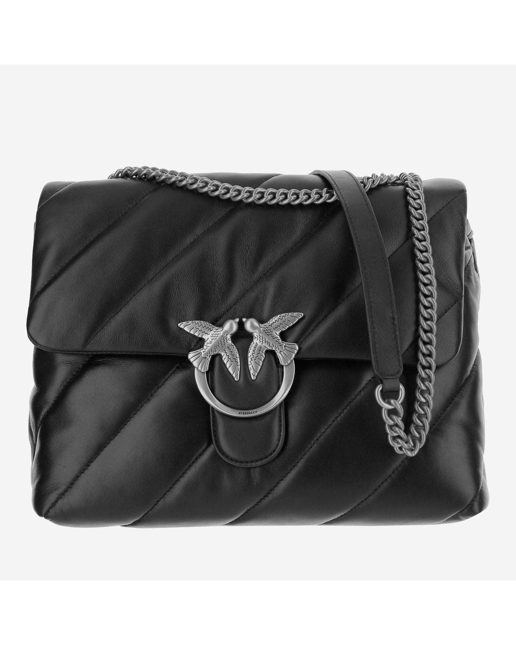 Borsa realizzata in nappa trapuntata Chiusura con patta e bottone Dettaglio fibbia Love Birds Diamond Cut sul davanti Tracolla in catena con spallina in pelle Uno scomparto Una tasca interna con cerniera Nero Prodotto in Cina Composizione: 100% pelle