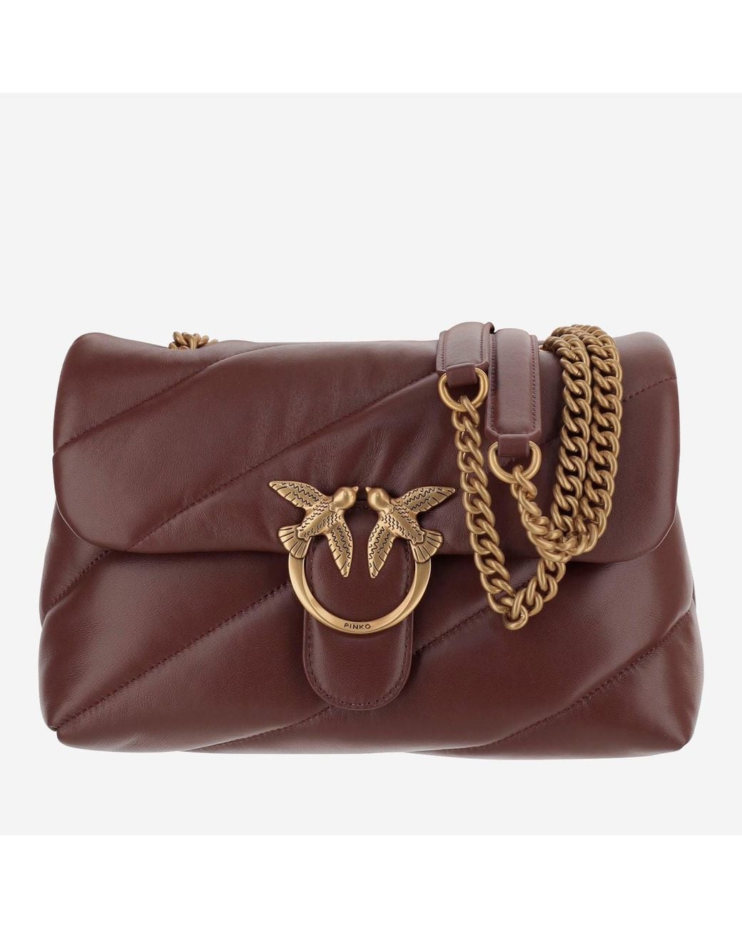 Borsa realizzata in pelle nappa Design trapuntato Chiusura con patta e bottone Fibbia Love Birds Diamond Cut sul davanti Tracolla in catena con spallina in pelle Finitura in metallo color oro anticato Due scomparti interni con tasca centrale con zip Bordeaux Prodotto in Cina Composizione: 100% pelle di vitello