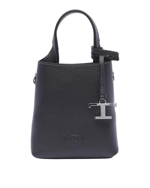 Micro borsa Tod's nera scomparti frontali logati tasca centrale aperta una tracolla regolabile e removibile placca logo Colore: nero