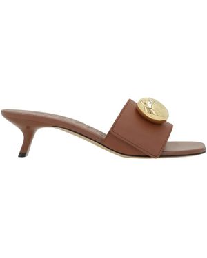 Button Heeled Sandals - Marrone