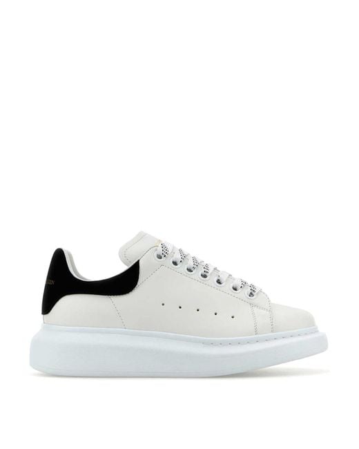 - Sneakers in pelle bianca con tallone in pelle scamosciata nera