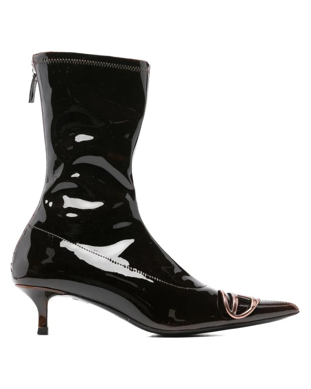 Marrone finitura lucida placca con logo design a punta tacco basso a stiletto chiusura con zip Size: 36. Gender: Male. Material:poliuretano/poliuretano/poliuretano. Colore: nero