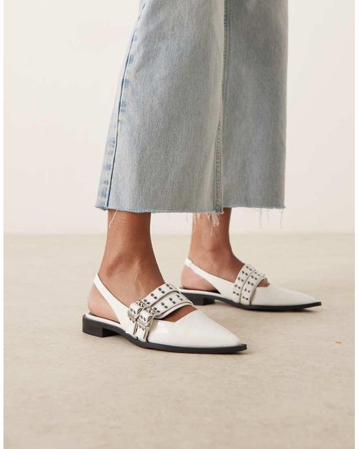 Scarpe di Raid Fibbie Cinturino posteriore alla caviglia Forma appuntita Suola piatta Colore: bianco