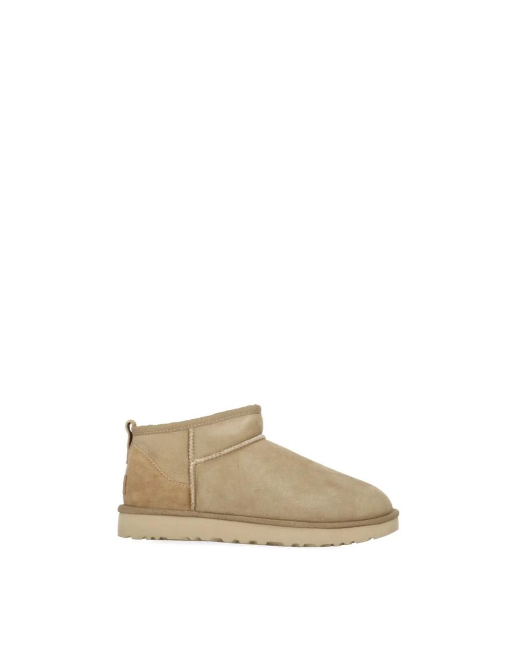 Gli stivaletti UGG Classic Ultra Mini combinano il tipico comfort in shearling del marchio con un gambale più basso per una facile calzata e versatilità nell'abbigliamento invernale. Caratteristiche principali: Beige | Pelle scamosciata | Suola in gomma | Interno in shearling | Punta rotonda | Patch con logo sulla parte superiore del tallone | Gambale all'altezza della caviglia | Dimensioni e vestibilità: Calzano regolari | Composizione e cura: Pelle scamosciata | Fodera in shearling | Suola in gomma Colore: neutro