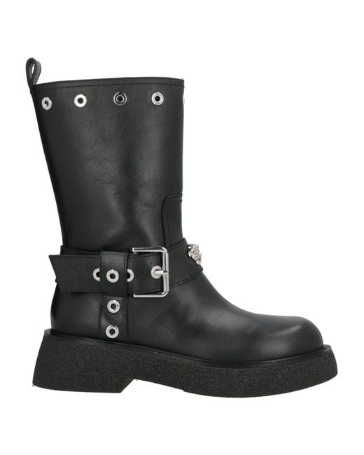 VERSACE. chunky boots, pelle, tinta unita con applicazioni, fibbia, brand logo, interno in pelle, punta tonda, tacco squadrato, suola in gomma, contiene parti non tessili di origine animale. Pelle.