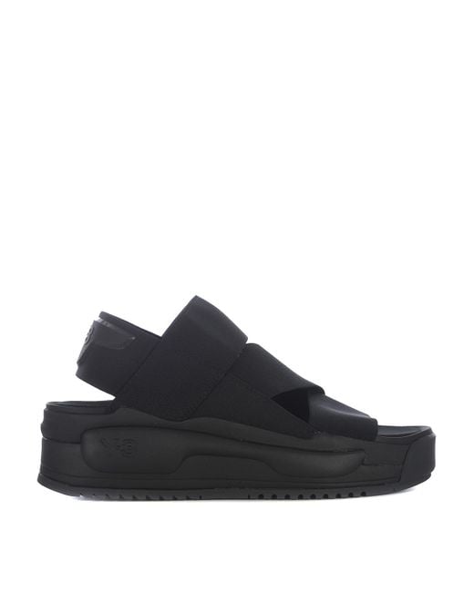 Sandalo y-3 in nylon nero modello slip-on dettaglio elastici frontali tomaia in tessuto logo Colore: nero