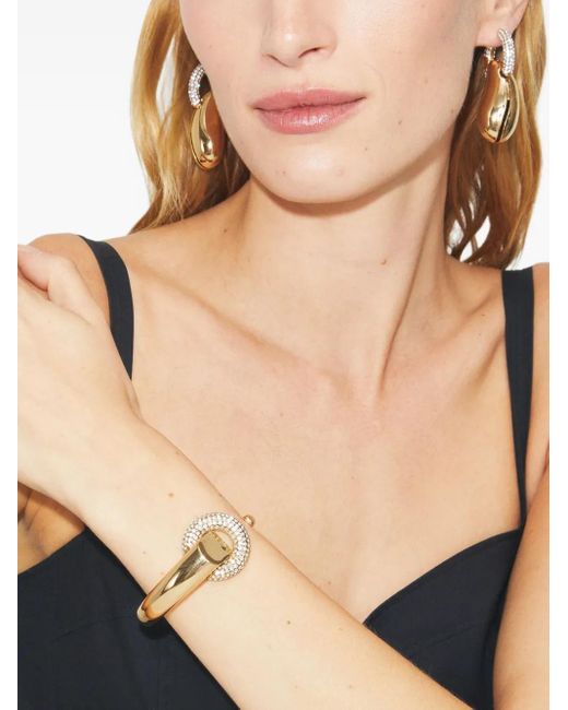 Ottone chiaro pavé di cristalli chiusura con fibbia design curvo finitura lucida chiusura a cardine Size: Taglia unica. Gender: Female. Material:ottone placcato in oro 18kt/cristalli. Colore: nero