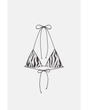Top Bikini Con Stampa A Quadri - Neutro