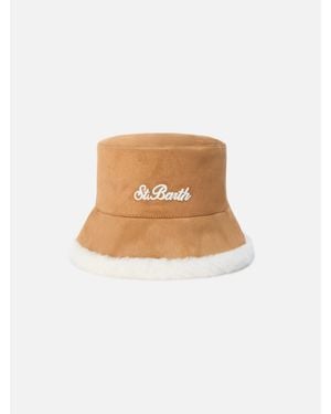 Bucket Hat Double Suede Fur, Reversible - Bianco