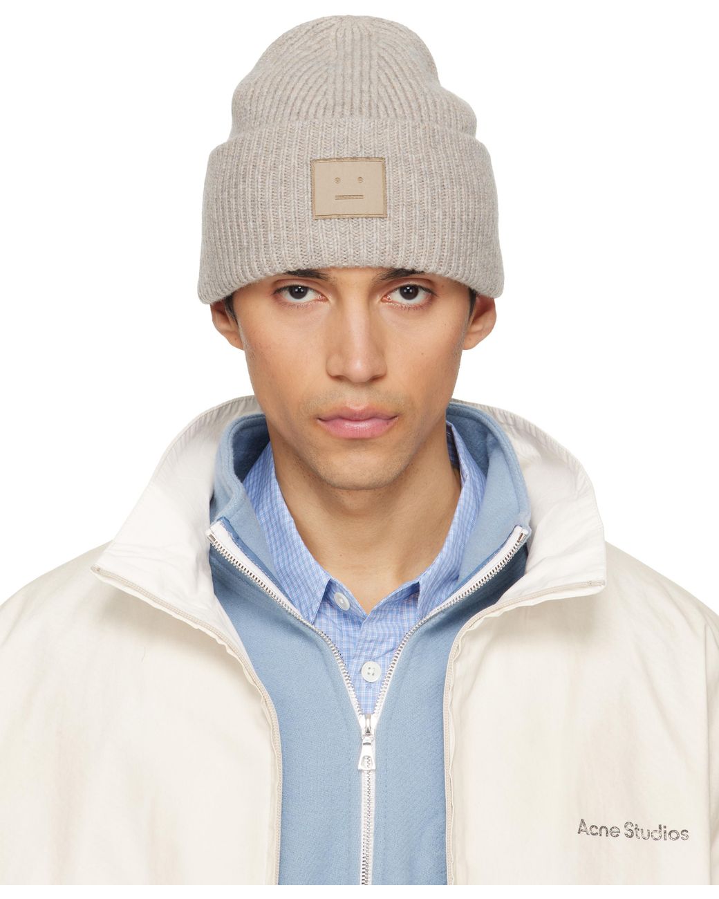 メンズ ブルー グレー Face Logo ビーニー