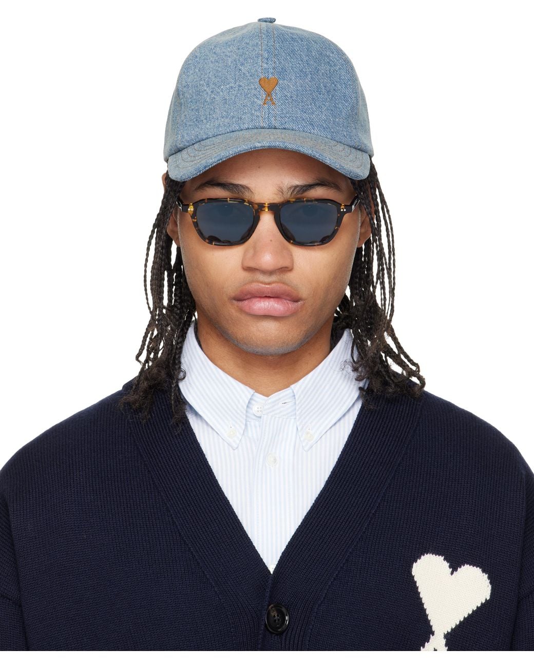 メンズ ブルー Ami De Coeur Embroidery デニム キャップ