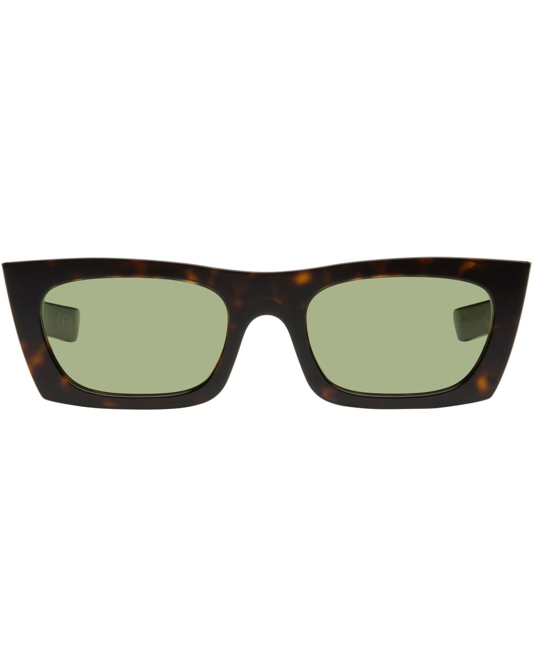 半透明なアセテートフレームのスクエアサングラス。カラーはトータスシェル調のブラウン。 ・ハンドメイド ・グリーンのレンズ、カテゴリー2 ・フレームと一体化したノーズパッド ・テンプルに埋め込まれたロゴのハードウェア ・透けて見えるコアワイヤー ・ポーチ付属 ・サイズ:53.21 145 サプライヤーカラー:3527 Green カラー: グリーン