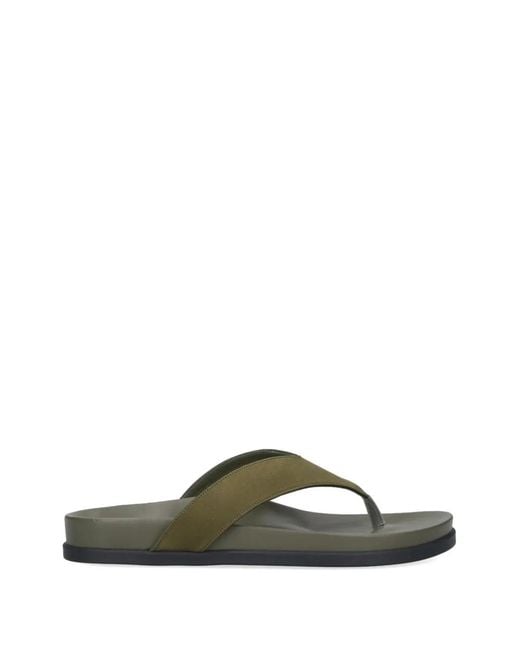 レディース グリーン レザーフラットサンダル