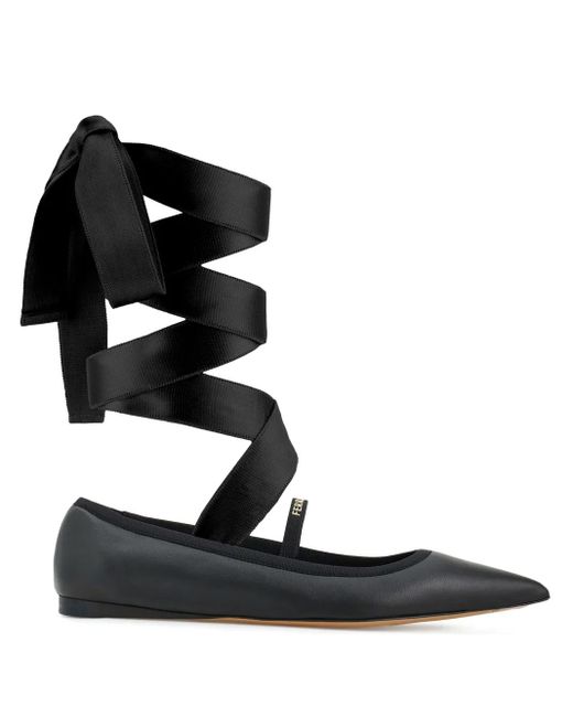 ブラック 前面にレースアップ レザーソール ロゴレタリング グログランリボントリム Size: 5.5C. Gender: Female. Material:ラムスキン/ラムスキン/ゴートスキン/カーフレザー.