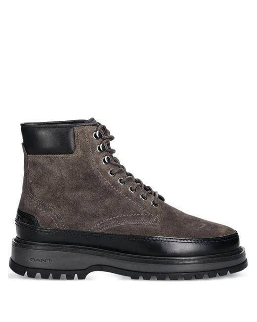 グレー パネルデザイン レースアップ ラグソール 背面にプルタブ ラウンドトゥ Size: 40. Gender: Male. Material:カーフスエード/カーフレザー/ラバー. カラー: ブラック