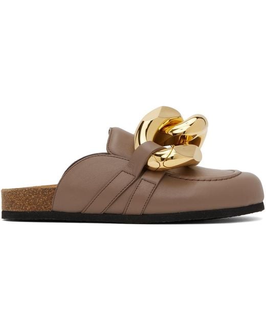 チェーン レザーローファーミュール - グレー