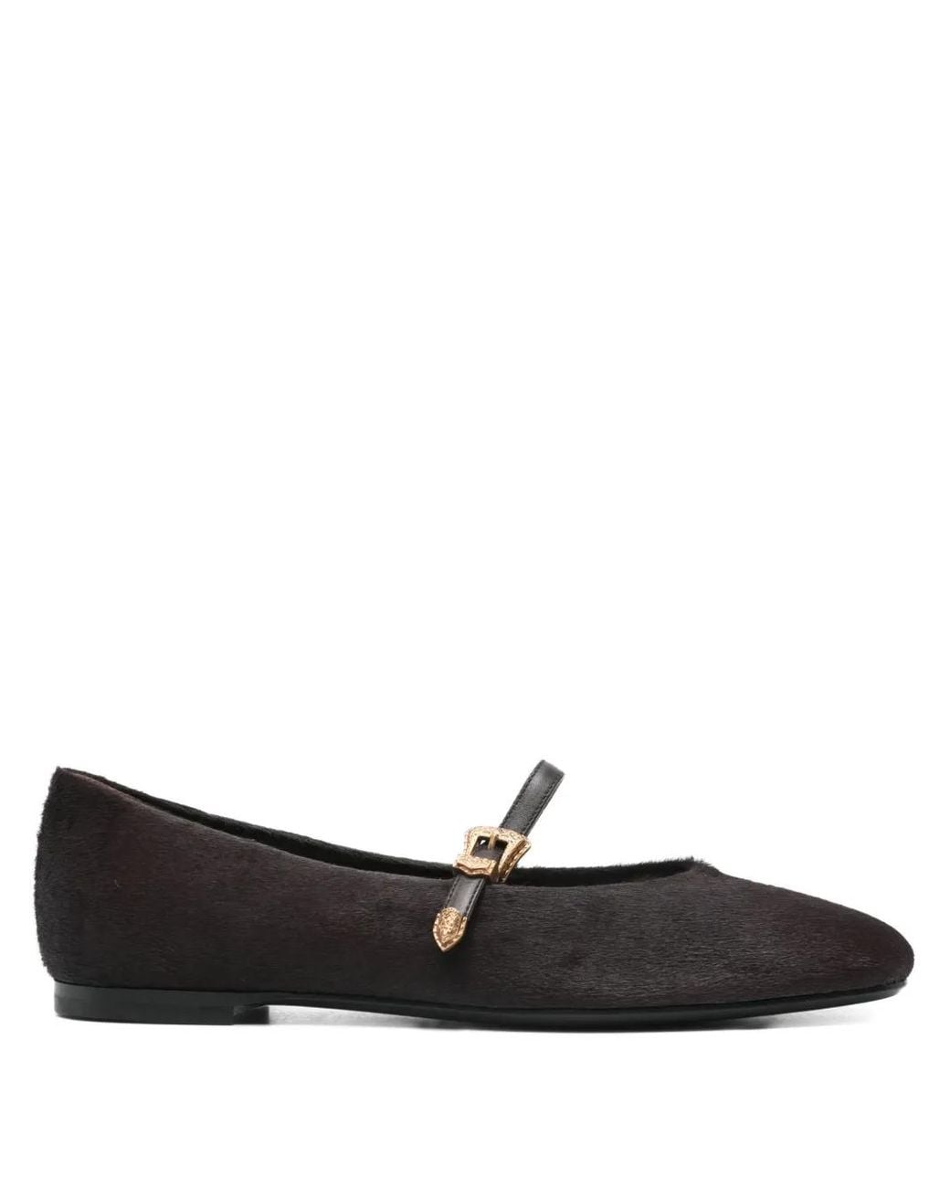 ブラウン カーフヘア バックル留め ラウンドトゥ フラットソール メリージェーンストラップ Size: 40. Gender: Female. Material:カーフレザー/レザー/カーフヘア/ゴートスキン.