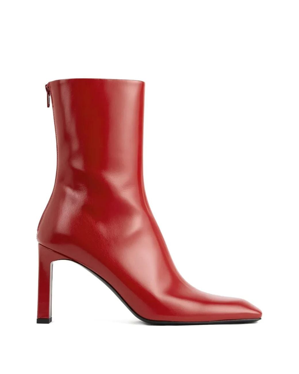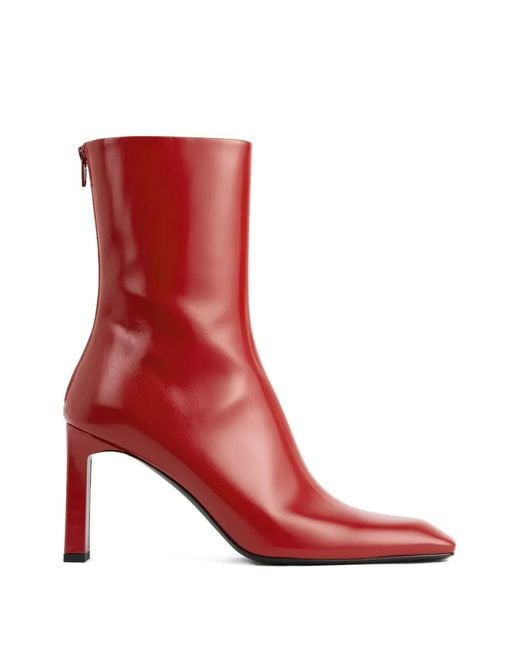 レッド グロッシーエフェクト スクエアトゥ 背面にファスナー アンクル丈 Size: 37. Gender: Female. Material:カーフレザー/ムートン/カーフレザー. カラー: レッド