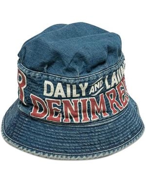 Lettering-Print Denim Bucket Hat - ブルー