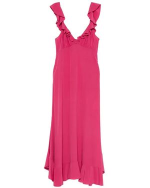 ラッフルシルクドレス - ピンク