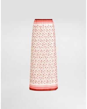 Dg Logo- Long Pleated Silk Skirt - パープル
