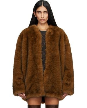 Elisa キルティング フェイクファーカラージャケット - ブラウン
