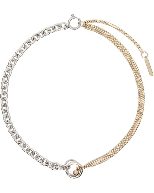 24Kゴールドめっきとパラジウムめっきを施したブラスのケーブルチェーンと、レイヤードのカーブチェーンのネックレス。ハンドメイド。 ・ドロップにチャーム ・引き輪 ・アジャスターにロゴプレート ・長さ 45.5cm サプライヤーカラー:Gold/Palladium カラー: メタリック
