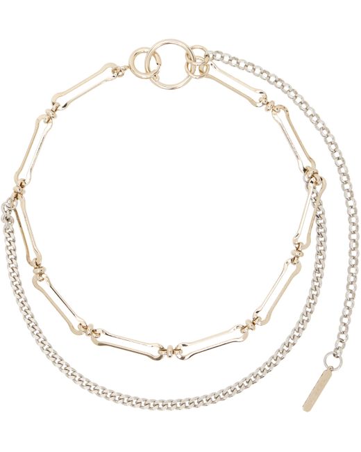 24Kゴールドめっきとパラジウムめっきを施したブラスの、ケーブルチェーンとカーブチェーンのレイヤードチョーカー。ハンドメイド。 ・引き輪とロゴプレート ・長さ 48.5cm サプライヤーカラー:Pallad/Gold カラー: メタリック