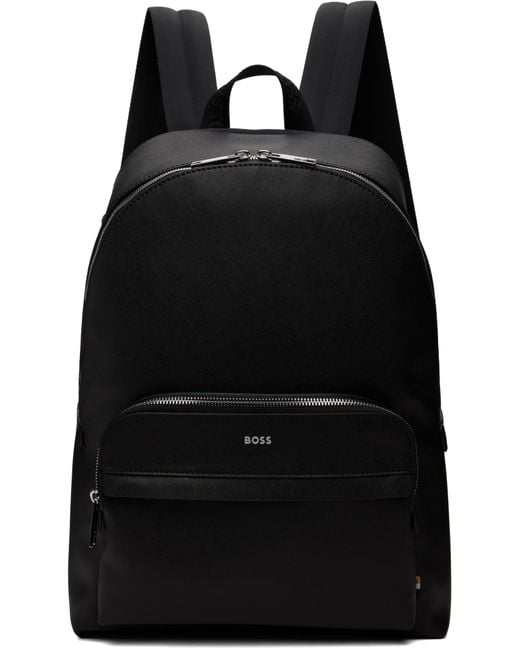 サフィアーノレザーのバックパック。 ・ロゴ入りのキャリーハンドル ・長さの調節ができるパッド入りショルダーストラップ ・前面にジップポケットとロゴ刻印 ・背面にパッド入りのメッシュパネル ・背面にジッパー付きノートPC入れとキャリーオン用ストラップ ・開口部にダブルジップ ・内側にジップポケット ・サテンの裏地 ・40.5cm x 33cm x 15cm サプライヤーカラー:Black カラー: ブラック