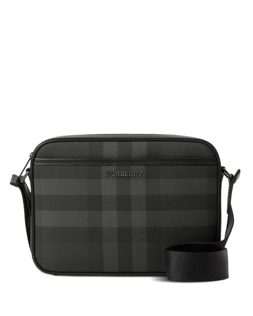 チャコール/ブラック レザー チェック シルバートーンのロゴ 調節可能なショルダーストラップ トップにジップ式開閉 メインコンパートメント Size: ワンサイズ. Gender: Male. Material:ポリエステル/ポリウレタン系熱可塑性エラストマー(TPU)/コットン/レザー.