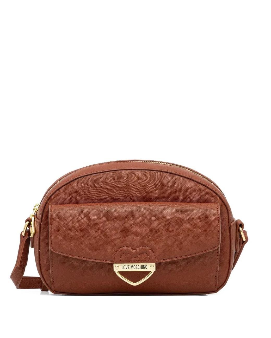 ブラウン ハートモチーフ 調節可能なショルダーストラップ ゴールドトーンの金具 前面にフラップポケット ファスナー Size: ワンサイズ. Gender: Female. Material:ポリウレタン. カラー: ブラウン