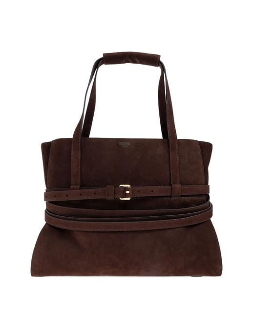 レディース ブラウン Tie Me スエード ハンドバッグ