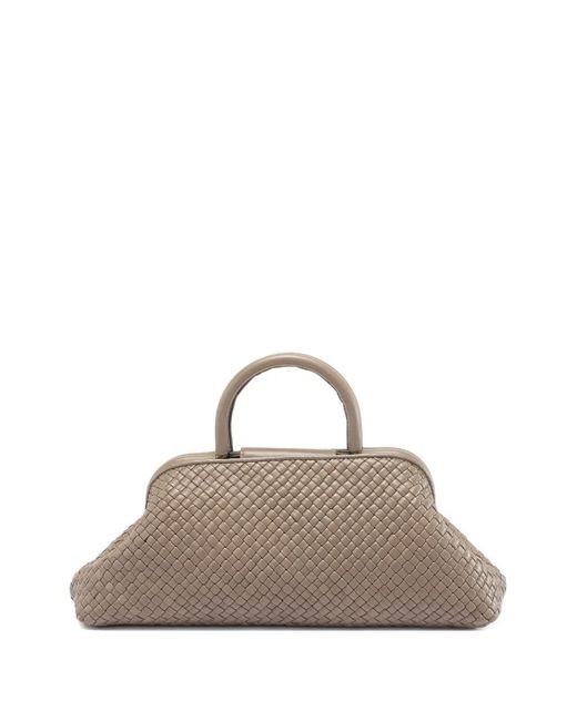 ウォルナットブラウン 編み込みレザー トップハンドル x 2 クラスプ留め 取り外し可能なショルダーストラップ 内側にポケット Size: ワンサイズ. Gender: Female. Material:レザー. カラー: ブラウン
