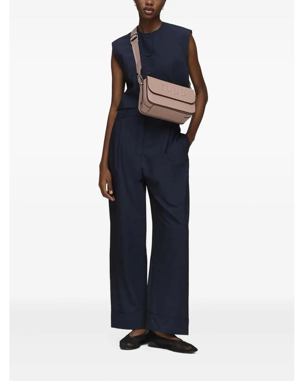レディース ブルー ロゴエンボス ショルダーバッグ