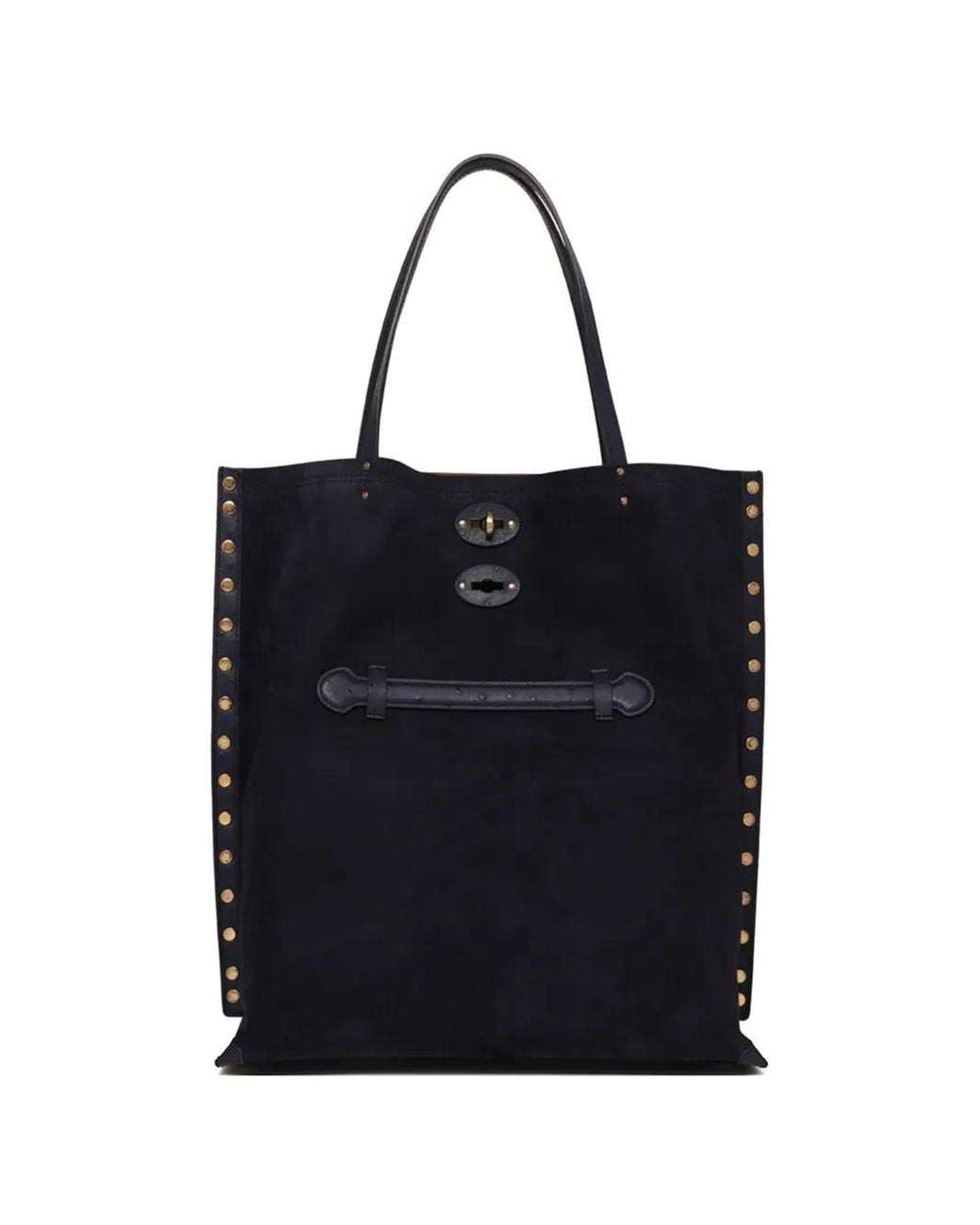 ブルー トップハンドル ゴールドトーンの金具 スタッズ装飾 ツイストロック フロントストラップ Size: ワンサイズ. Gender: Female. Material:カーフレザー. カラー: ブラック